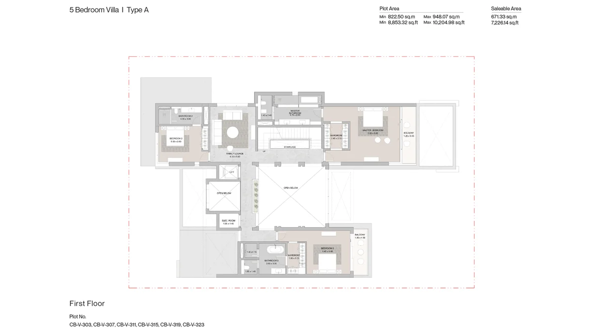 The Coral Beach Villas boast expansive floor plans, with 5-bedroom villas measuring up to 7,226 sq. ft to 7,387 sq. ft. Designed with a thought for maximum space and ultimate luxury, each residence comes complete with private backyards, setbacks, terraces, and family lounges-all together combining comfort with sophistication.