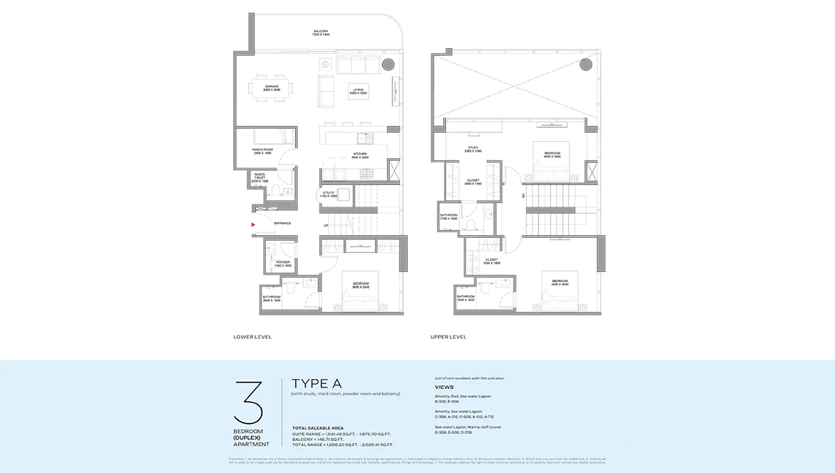 The SOBHA Florine Beach Residences floor plan is intricately built to suit different living styles. From one- to three-bedroom apartments to luxury duplexes, every unit boasts an open layout and ultra-modern finishes. It is your best bet to call it your home destination on Siniya Island today!